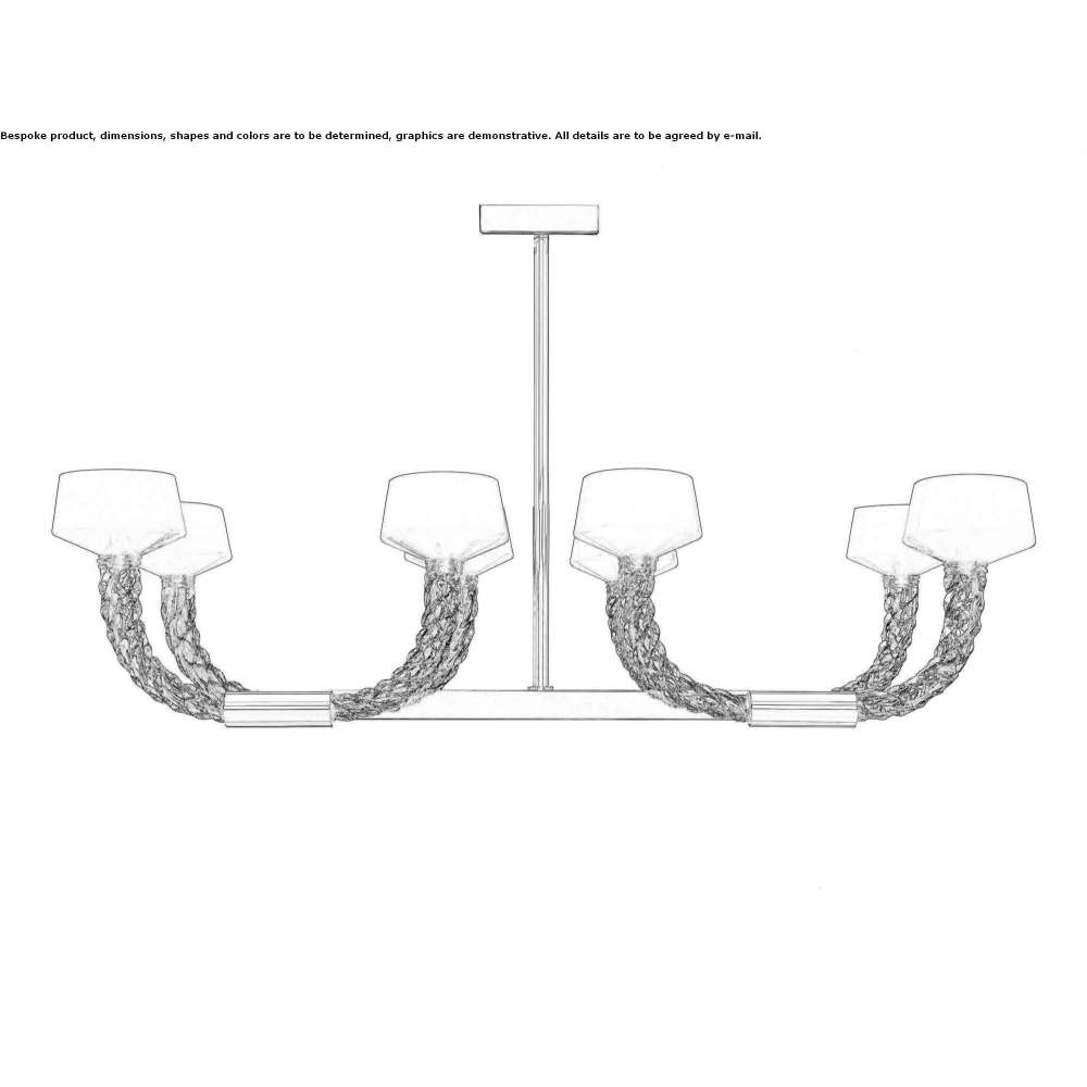 In the past that is always present, the glass takes shape and the light intertwines with the shadows, creating an energetic, dizzying embrace. Following the successes of the recent past, a horizontal lamp with an energetic yet refined look was created. The crystal of the arms, which is very material, is transparent, and the bulbs are enclosed in opaque white cups that diffuse and soften the light.