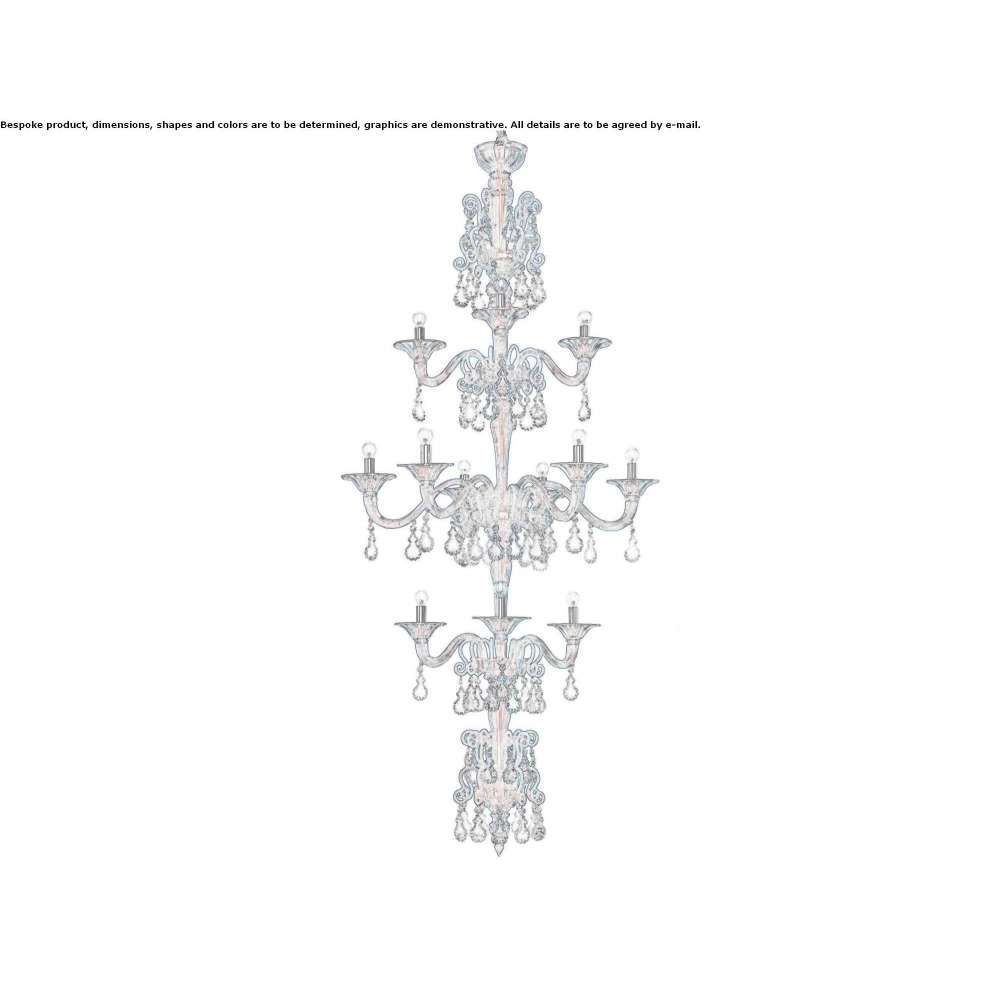 An extraordinary chandelier developed mainly in height (up to two 110 inches), suitable for illuminating representative environments or high-impact settings.