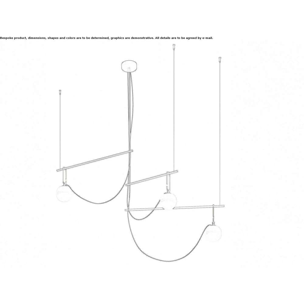 nh is an LED hanging lamp made of blown glass and brushed brass. FEATURES Color: black/brass Installation: suspension Material: blown glass, brushed brass Watt : 15 W Voltage: 220-240 V Delivered luminous flux: 1134 lm Efficiency: 80% Efficiency: 75.57 lm/W CRI: 80 SOURCES NOT INCLUDE Category: LED MODERATION Number: 3 Watt: 5W Socket: E14nh continues to research the dynamic interaction of expertise, detail, materials, form and lights that Neri&Hu develops together with Artemida. The selected materials are a perfect combination of tradition and innovation, as well as an expression of responsible and sustainable design, also expressed through the use of an energy-saving retrofit LED source. Like all Neri&Hu designs, nh offers a reinterpretation of oriental culture and traditions with a constant, contemporary approach. With surprising lightness and elemental movements, nh creates a landscape of elements that create - individually or in combination with each other - a non-static, balanced composition characterized by an elegant matching of colors and materials.