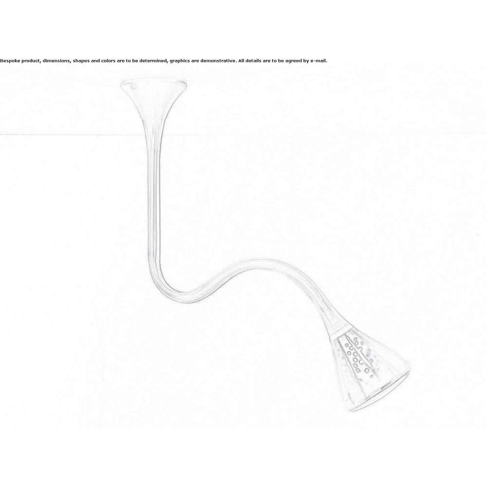 Pipe is a fluorescent, rotating hanging lamp. Flexible painted steel construction, covered with a natural anti-yellowing silicone casing; Ceiling rosette and lampshade made of transparent polycarbonate painted with a rubber effect; mirror aluminum reflector with random perforations; painted steel bottom plate. The new internal diffuser reinterprets the old fluorescent tube using a modern LED source, which guarantees the same optical performance with lower energy consumption and better light quality.