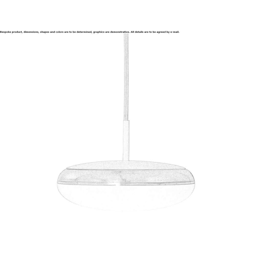 The fixture emits diffused light. The curved opal diffuser provides soft, pleasant room lighting directed mainly downwards. The metalized, translucent back side of the diffuser creates a halo effect and reflects ambient light. The rounded white top complements the curve of the diffuser. The fixture is suspended on a string in a simple and elegant way. A white tube suspended in the upper part of the housing ensures stability and balance of the fixture.