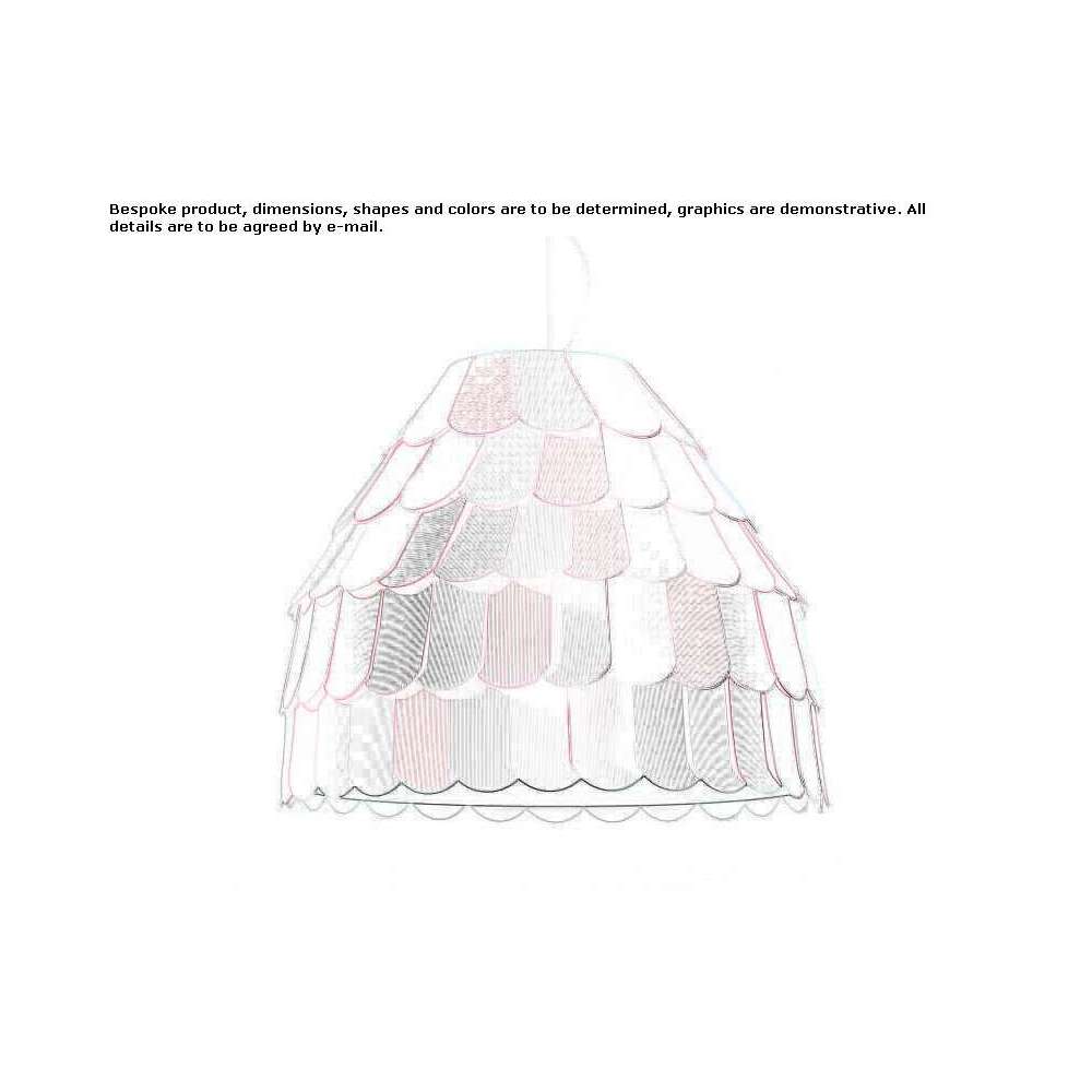 The collection consists of hanging lamps for indoor use, in five different shapes, which can also be mounted directly on the ceiling rose by simply shortening the cables. The frame is covered with scales made of a semi-rigid rubber material, in four different colors (white, gray, brown and green), while the round diffuser is made of white fabric. The lamp is powered by the mains and is suitable for use with halogen and fluorescent bulbs.