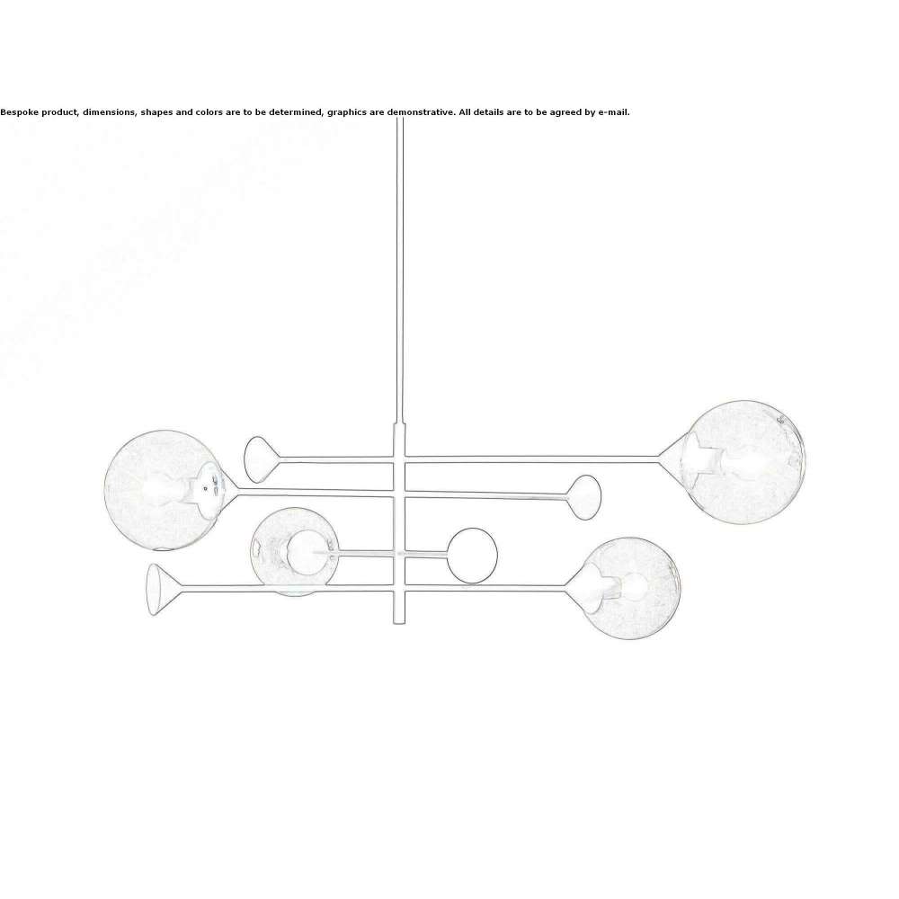 series of hanging lamps with 1, 4, 8 or 12 light sources as well as floor and table lamps. The frame is made of polished metal and the balls are made of blown glass with a Murano finish, available in brown, amethyst and gray. The lampshade with an E27 base has an LED lamp.