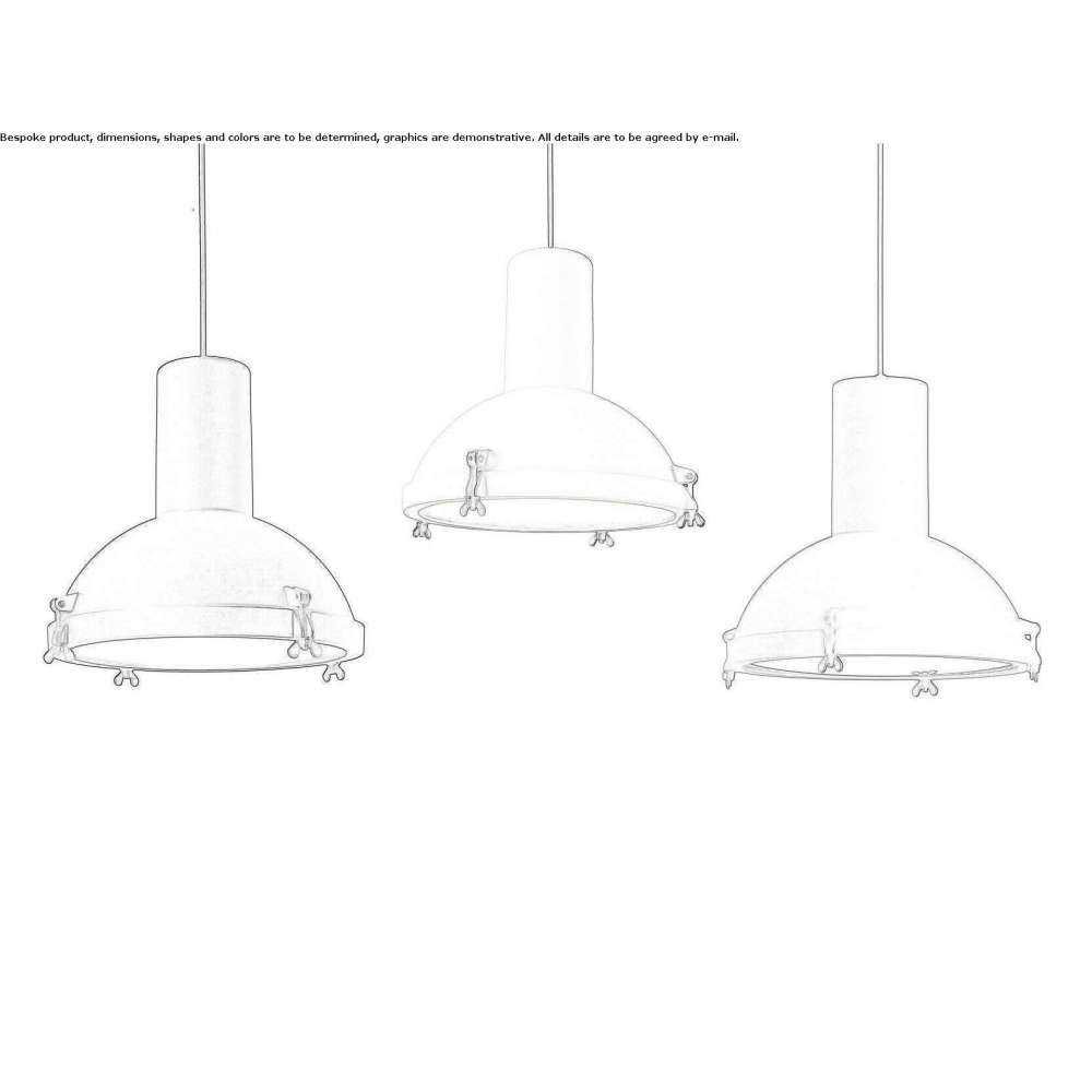 PROJECTEUR 365 PENDANT is a painted aluminum hanging lamp, available in versions for indoor and outdoor use. LED/HALO/FLUO IP30 Source E27 Total power 150W Direct, point emission br />Switchable, dimmable, depending on the bulb Voltage 230V Ip class 30 LED/HALO/FLUO IP54 Source E27 Total power 60W Direct emission, spot Switchable and dimmable, depending on the bulb Voltage 230V IP class 54 Le Corbusier's projector was designed for the Supreme Court in Chandigarh, India in 1954 . Aluminum body painted in dark blue, sand or moka white. Diffuser glass bent and sandblasted in the inner part. Painted body, base and visors. Screws and small metal parts black chrome plated. Available in floor, wall/ceiling and hanging versions. Wall/ceiling and hanging lamps are also available in an outdoor version (IP54).