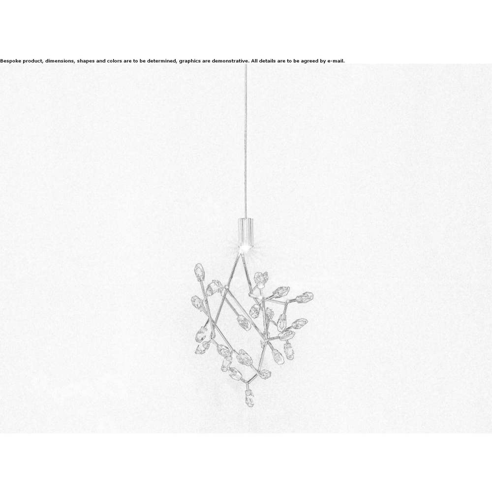 Core, designed by Christian Lava, recalls the natural energy at the heart of our world. Like bright lava seeping through the earth's crust, vibrant spheres of faceted crystal break through the iron surface of this pendant. Forcing light to pass through this metal structure creates a powerful, living exchange of forces, light and shadow erupt throughout the room as the LED light flows through it, and the light itself emits an organic glow.