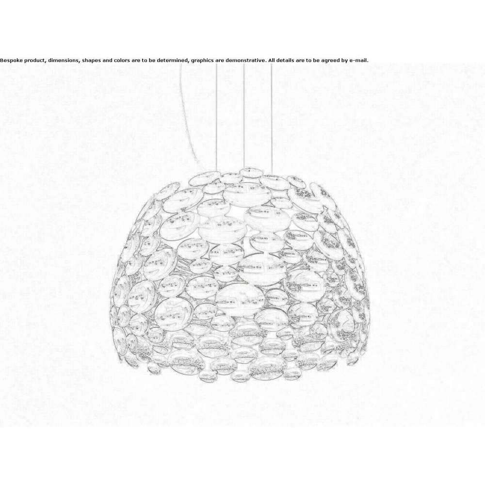 The idea for Anish, a playful study in reflection, was born when designer Dodo Arslan, while playing with his daughter, became fascinated by the almost infinite reflections created on spoons thanks to their concave and convex surface. Taking this idea to a larger scale, Dodo took inspiration from the Italian cutlery manufacturer Sambonet and created a pendant consisting of a series of spoons, from the smallest teaspoon to serving spoons, emphasizing the reflective quality of the shape. The result is an installation that creates a "galaxy" effect of seemingly infinite light. Design Dodo Arslan.