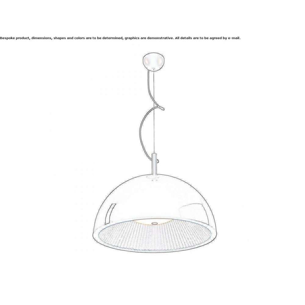 The design inspiration for this lighting fixture was an umbrella on a sunny day, during which the sun's rays penetrated the fabric, creating delicate light reflections. It is available in two sizes and two color combinations: black and gold or white and silver.