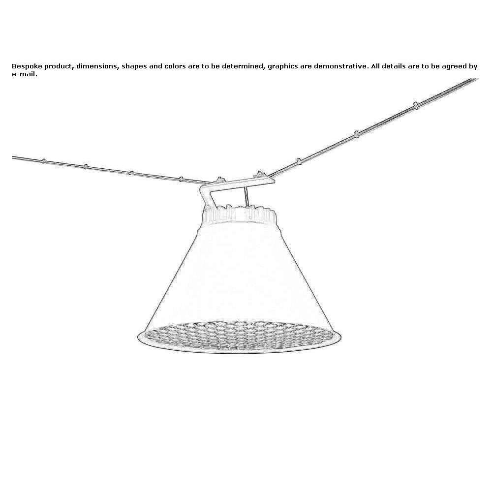 Painted aluminum in black (RAL 9005) or beige-gray (RAL 7006) as standard. Other colors on request. Inner lampshade made of white painted aluminum. Model E27 has an inner lampshade made of frosted glass. LED models can be supplemented with an internal diffuser made of frosted glass. On request, they can be made without a mesh and in other colors. Information about LEDs System power 18W or 32W. The luminous flux of the luminaire is 1166 LM or 2120 LM. CCT 3000K. SDCM 3. CRI >80. Installation Total mounting without cable or wire. Connection Terminal block inside the housing. Cable entry.
