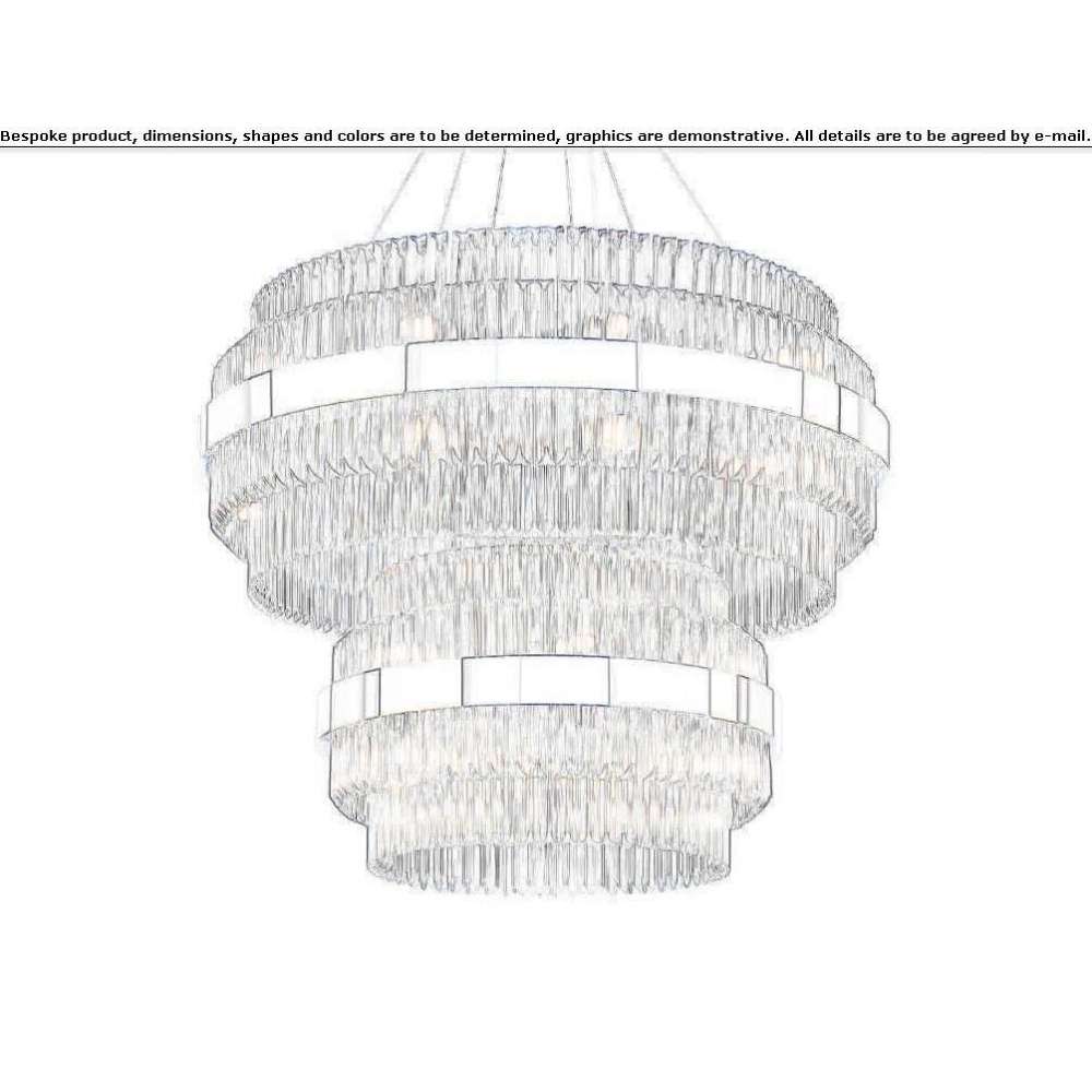 2312 is a hanging lamp with transparent triangles. A lighting fixture that diffuses light into the surroundings with excellent effect, creating a warm and friendly atmosphere. Shiny metallic stripe in Nikel color. Fixing system with adjustable steel cables.