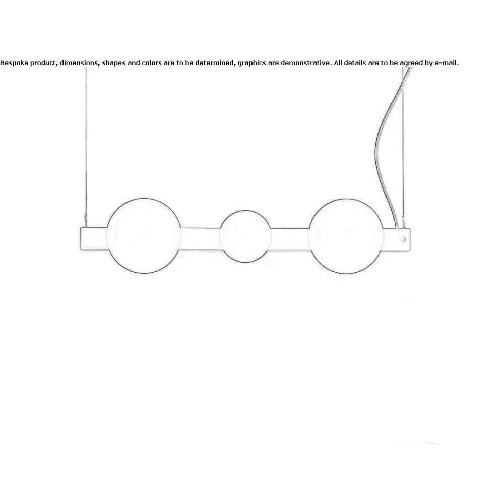ics is a hanging fixture with adjustable length on iron cables. aluminum or brass construction, painted finishes or raw brass. Lampshade made of blown opal triplex or clear glass. LED lamp included. Technical data: ics 90/so long: 3 e27 max 60w - 3 g9 max 40w - 230v ics 90/so wide: 3 e27 max 60w - 3 g9 max 40w - 230v