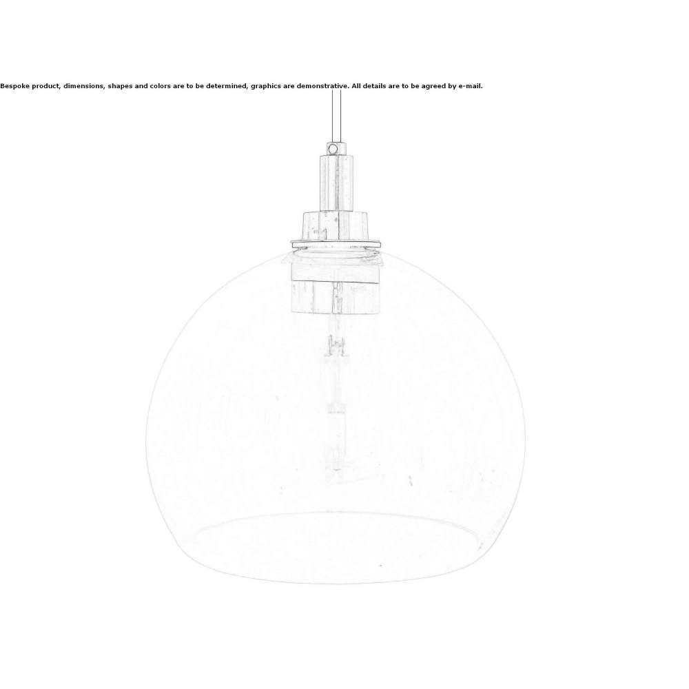 The LEITH hanging lamp is a modern hanging lamp made of a glass ball, open at the bottom. The 250mm diameter LEITH hanging lamp is waterproof and can be installed in most bathrooms and outdoor spaces. It has a teardrop-shaped glass lampshade placed in an outer glass ball lampshade. The tube-shaped LED bulb is discreetly placed in a waterproof housing.