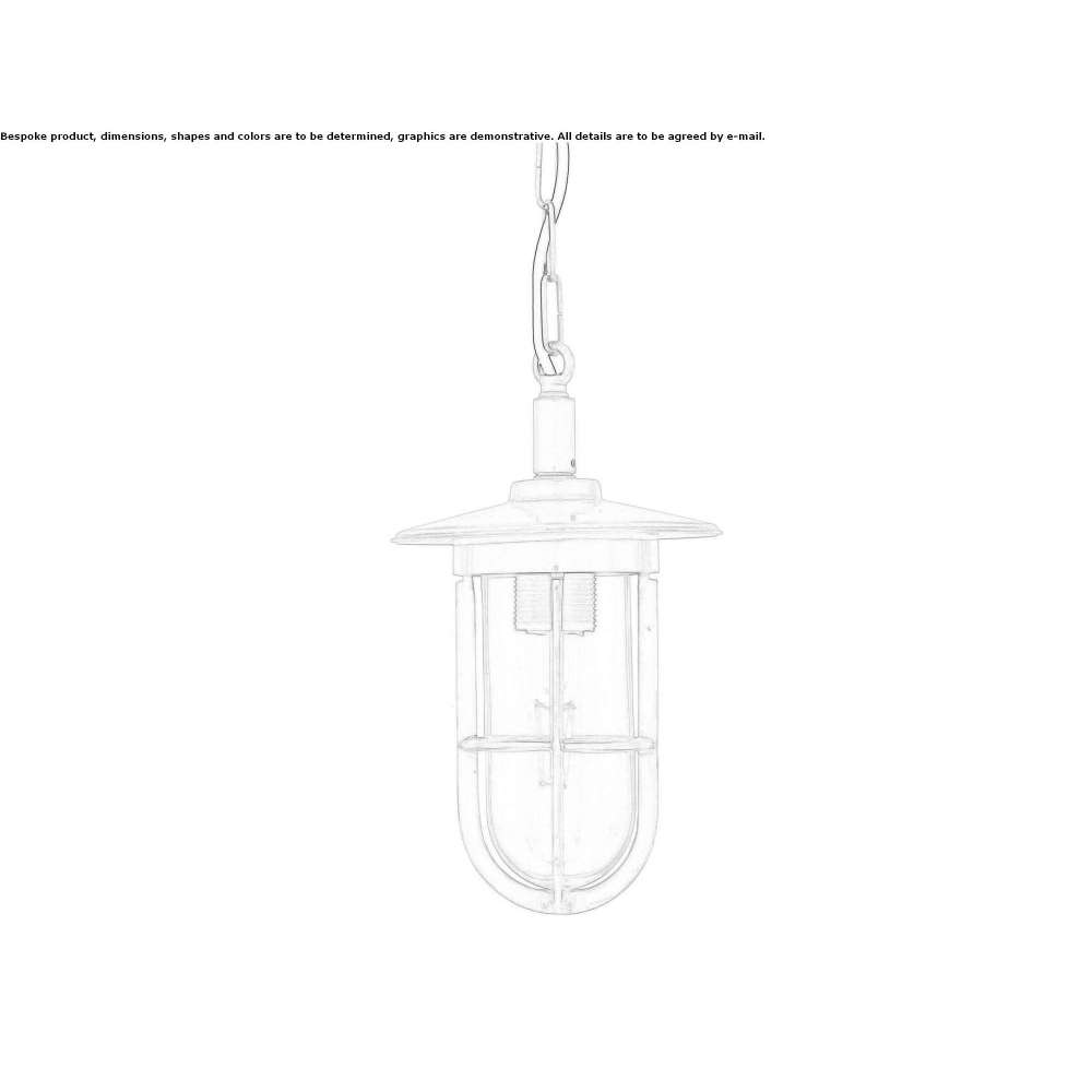RAMOR NAUTICAL is a hanging lamp with a characteristic glass shade and a surrounding brass protective cage. It is IP65 rated and can be safely installed in most outdoor and bathroom locations. The RAMOR NAUTICAL hanging lamp consists of a nautical-style glass shade, a protective brass housing and a small brass shade above that prevents moisture from entering. RAMOR NAUTICAL hangs using one meter of the supplied cable and chain. It is attached to a matching ceiling rose, which is also included in the set. This nautical lamp is available to order in antique brass, antique silver, polished brass, satin brass and natural brass. Antique silver, polished brass and satin brass finishes can only be used indoors. The RAMOR glass lampshade is available in a transparent, matte or cracked finish. LED bulb with fluorescent tube is sold separately.