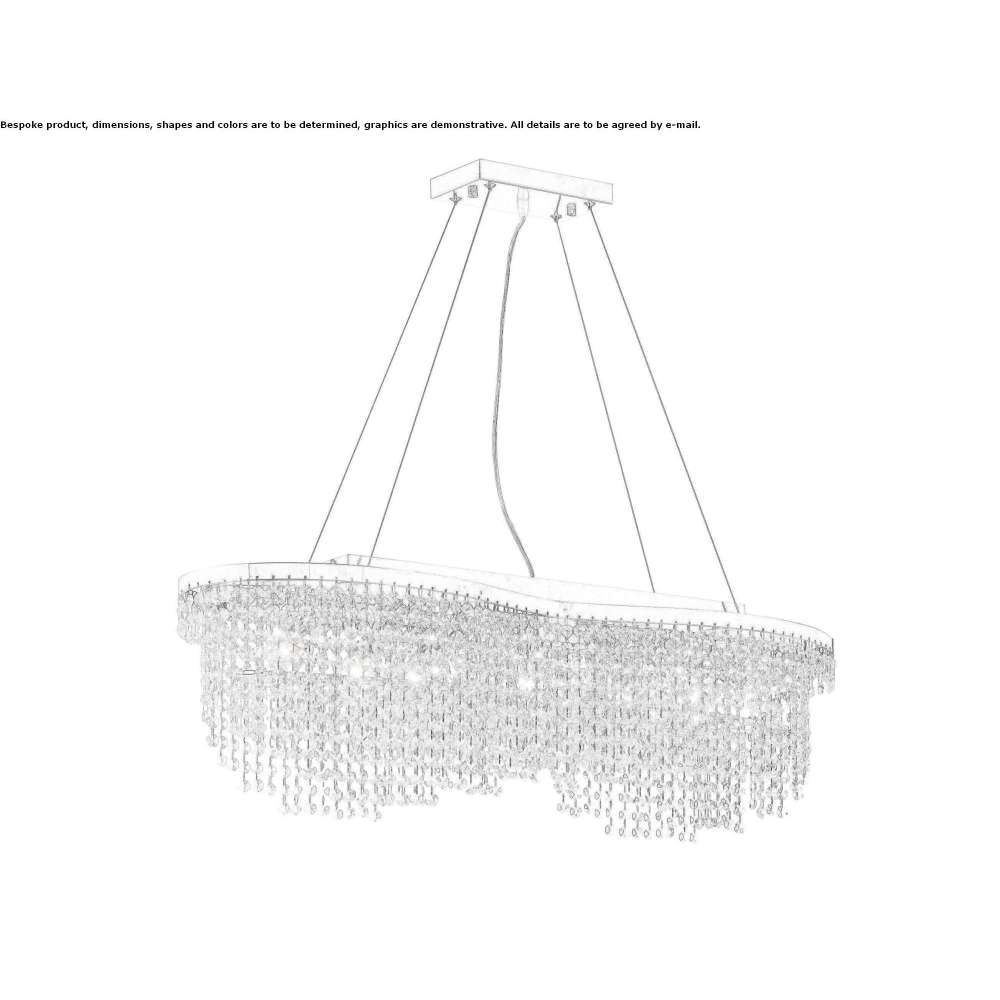 Toils is a hanging lamp with a metal structure and a chrome finish. Crystal pendants. With the possibility of adjusting the height. Available in gold or nickel finish.