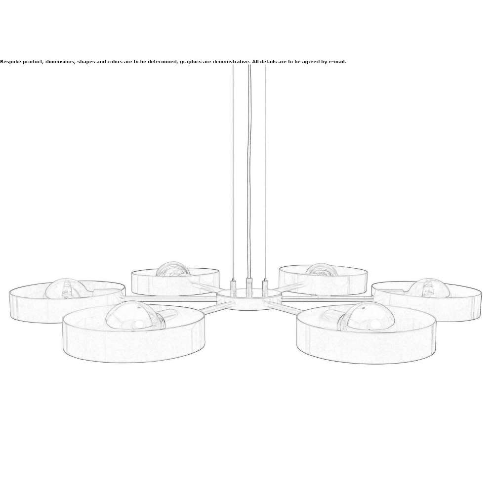 The FOSSA chandelier is an industrial chandelier with six arms radiating from the center. At the end of each arm there is a lamp holder and a round brass ring. We recommend using one of our LED mirror bulbs (sold separately) for this six-light chandelier. The bulb with a chrome or gold mirror cap reflects the color of the surrounding brass ring.
