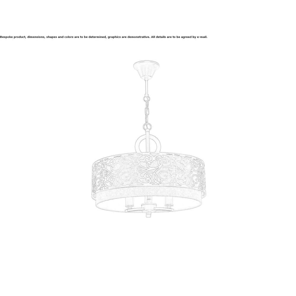 Venera is a hanging lamp with a metal structure and stenciled decoration. Brass finish. The lampshade is covered with fabric.