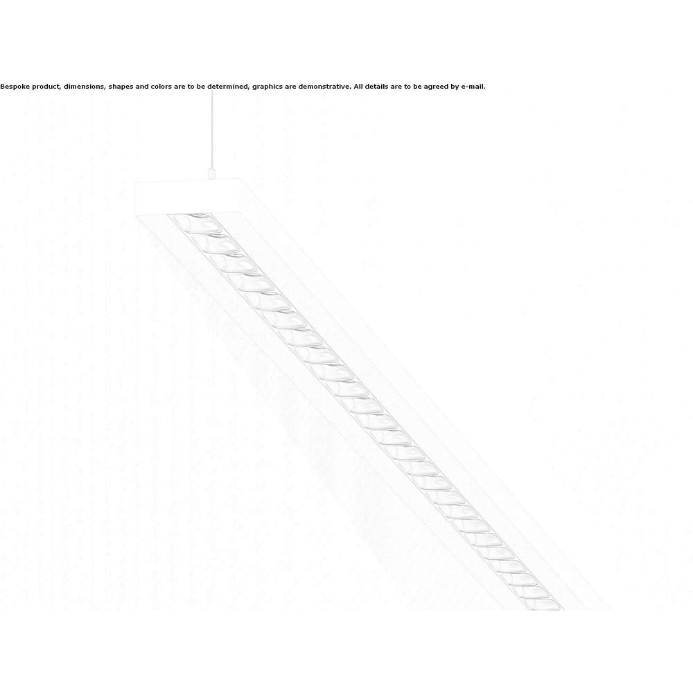 Microprismatic screen and satin louver for office applications. Opal diffuser made of acrylic glass for general lighting. Wallwasher for uniform vertical lighting. Converter integrated with the luminaire housing, optionally switchable or dimmable (1-10V, DALI, Touch-Dim, Casambi). Color temperatures 2200K, 2700K, 3000K, 3500K, 4000K or 6500K. Initial binning ≤ MacAdam 3. Color rendering CRI>80 or CRI>90. Y-cord suspension with height adjustment and transparent power cable. Made to order: Integration of emergency lighting components.