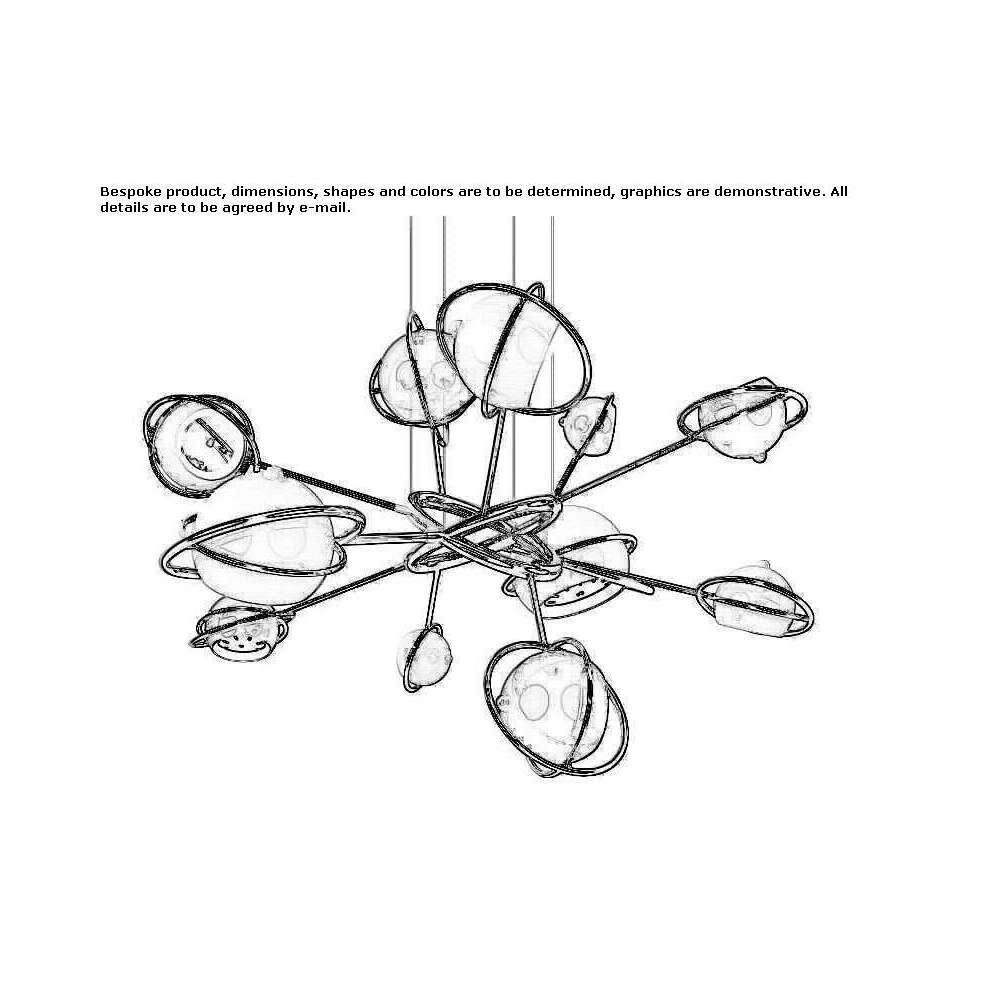 Inspired by space with all its galaxies and planets, we proudly present Cosmo. A dynamic element full of energy and versatility because all its balls can rotate on 2 axes, allowing you to throw light anywhere. The majestic lighting element, composed of 11 light balls of various sizes, is made of aluminum and a brass body structure. Standard finishes: Body: gold-plated. Lampshade: glossy black and glossy white (outside) and matte white (inside). Dimensions: height: 27.5" | 70 cm depth: 47.2" | 120 cm long cable. Height: customizable (when purchased). Lamps: G9 lamps 33x (3 per ball).
