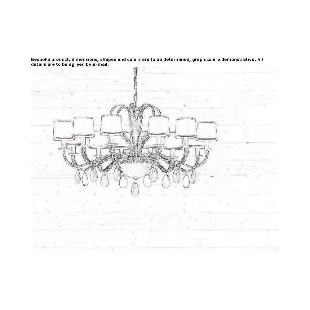 Noblesse 12 is a hanging lamp with a painted metal frame decorated with transparent glass beads. Shantung fabric lampshades, leaf-shaped pendants in gold or silver. 12XE14X10 W - USA: 12XE12X40 W (not included)Noblesse - Metal frame decorated with clear glass beads. Shades made of shantung fabric complement the play of light and shadow.