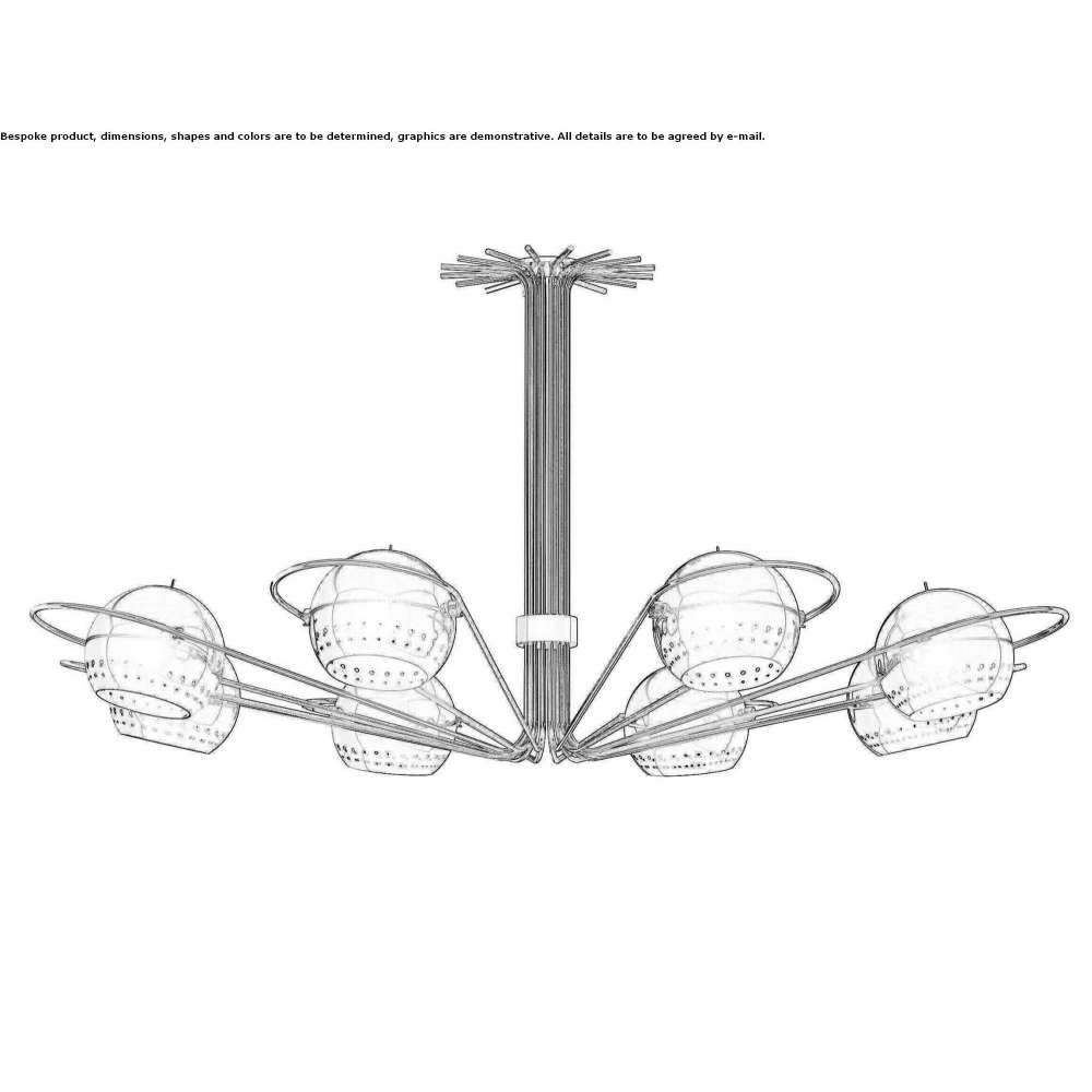 NEIL – the latest Deligthfull hanging lamp, with round arches and spherical diffusers, brings to mind the golden years of space exploration in the 1960s. It has 8 arms with adjustable lights, which creates a universal element. It also allows you to illuminate only 4 of the 8 diffusers. Shade: RAL lacquered color. Frame: chrome or gold-plated. DIMENSIONS: Height: adjustable. Diameter: 120 cm | 47.24 inches. LAMPS: E27 x 8 bulbs.