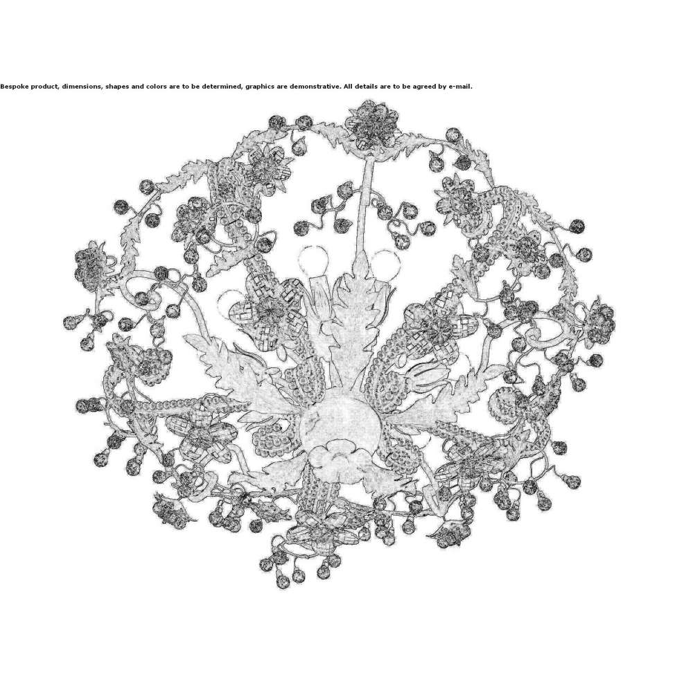 P365 is a 10-light hemispherical ceiling lamp in the shape of an acanthus leaf decorated with colorful crystals, artistic pearls and clear faceted balls.