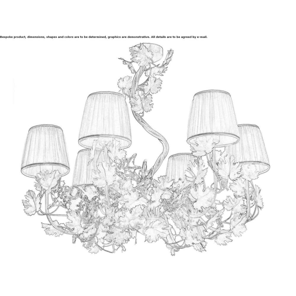 2171/CH6/AR is an elegant chandelier with a harmonious line, silver in color with decorative leaves in transparent glass. A lighting element that perfectly disperses light in the surrounding environment, creating a warm and friendly atmosphere.