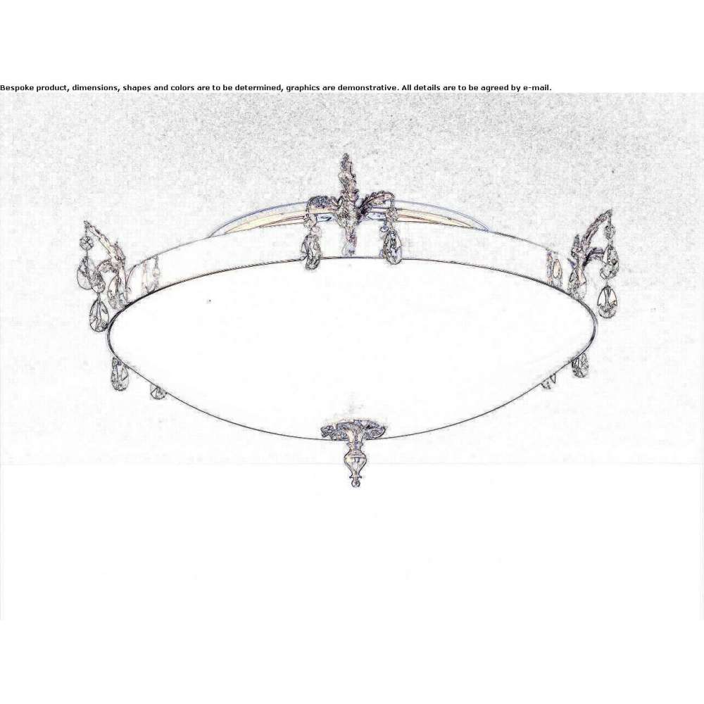 Primadonna PL3/PL4 is a ceiling lamp with a metal structure and cast brass decorations. Crystal pendants. Primadonna PL4: 4XE27X20 W - USA: 4XE26X60 W (not included) Primadonna PL3: 3XE27X20 W - USA: 3XE26X60 W (not included)PRIMADONNA 6020 - Metal frame, made of noble polished gold or elegant polished gold, combined with brass decorations. A series of clear crystal pendants enhance the soft light diffused by the pongè lampshades.