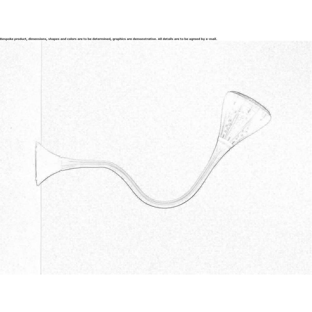 Pipe is a wall and ceiling lamp with a flexible, painted steel structure, covered with a natural silicone casing to prevent yellowing; wall mounting element and diffuser made of transparent polycarbonate painted with a rubber effect; mirror aluminum reflector with random perforations; lower plate made of painted steel. The new internal diffuser reinterprets the old fluorescent lamp using a modern LED source, which guarantees the same optical performance with lower energy consumption and better light quality.