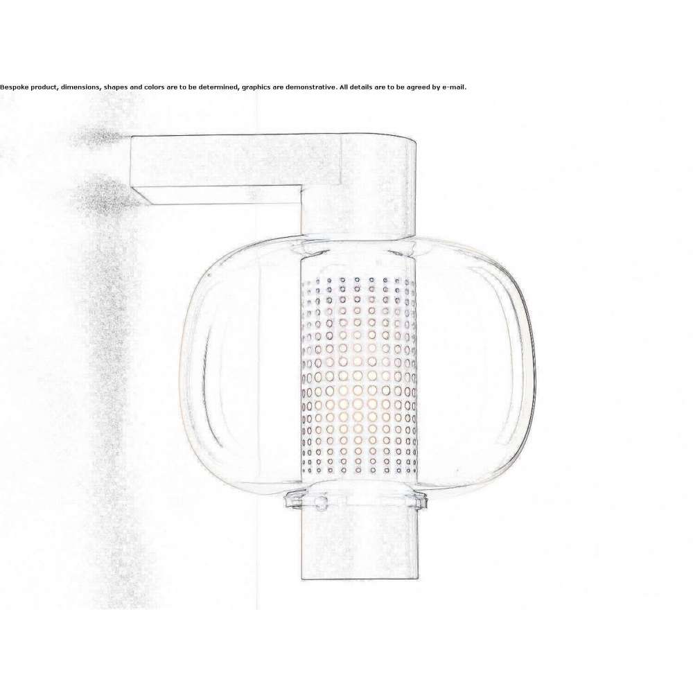 The resemblance to the traditional bonbori lamp is achieved by the hand-blown glass shade, an extraordinary single piece made of several layers of carefully formed glass, each of which is carefully inspected by a master glassmaker before being blown into the mold. The lampshade is made of smoky brown or smoke gray opal, opal or clear glass, while the metal body is available in matte black powder coating, copper metallic or gray metallic.