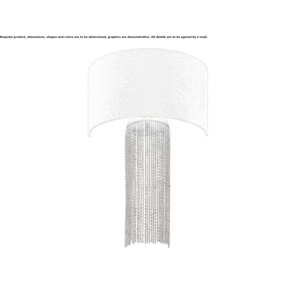 Impressive is a gold stainless steel wall lamp with a white fabric lampshade. Decorative chains are the same color as the fittings. A removable fabric diffuser softens the light beam. Light source - lamps with an E14 base.