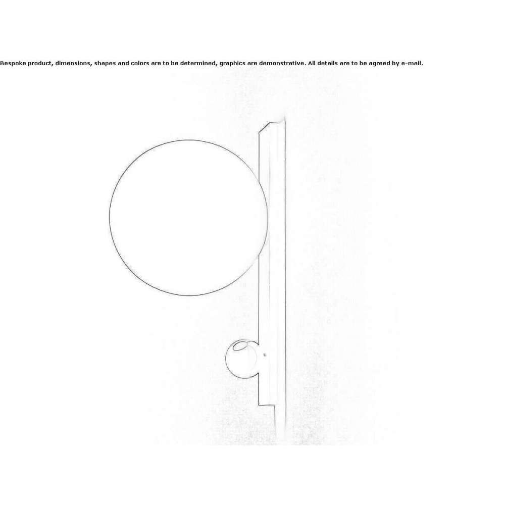 Nash - my game theory: until the context changes, the small balls will remain in equilibrium. Wall or table luminaire with brass or aluminum structure. Finishes: raw brass or painted, blown glass opal diffuser. LED lamp included.