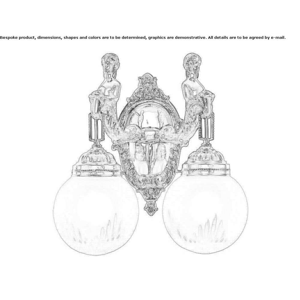 Fortuna II is a wall lamp made of brass available in various finishes. Finishes: antique, shiny brass, matte brass, shiny nickel, matte nickel Power: 2x75 W E27 UL certified componentsAmong neo - classic baroque lamps, those from the Fortuna collection are our most famous. By the end of the 19th century, the ornate and romantic design of a mermaid holding hand-carved glass was widespread among lamp manufacturers. This extravagant, classic wall lamp with a romantic mermaid design is a fabulous decoration for an imaginative home. Classic forms and shiny brass create a unique lamp that will add more than a bit of luxury to your interior. The decor and arms have been redesigned with extreme care down to the smallest detail. The lamp is inspired by an original from the late 19th century. A chandelier with an antique or gold finish is an extremely elegant decoration of your bedroom, dining room or living room with an even higher ceiling. If you prefer something even more extravagant, ask for a nickel finish. The backplate and arms were made with the greatest care. The lamp can be equipped with conical or round, sandblasted glass, which is carved in the Murano style in four variants and is a 100% Hungarian product. We produce it from pure brass in shiny, antique and nickel finishes. The lampholders are made of porcelain, so you can install traditional, energy-saving and LED bulbs. Take some time to look at the lamp closely: it is, like all our lamps, made with great care, like jewelry. Our well-known hallmark is proportionality, which has taken years to design and perfect. Producing a lamp requires between 14 and 16 work steps, depending on the finish. Handicraft technology is time-consuming (some stages of work last for hours), and requires a lot of knowledge and experience.