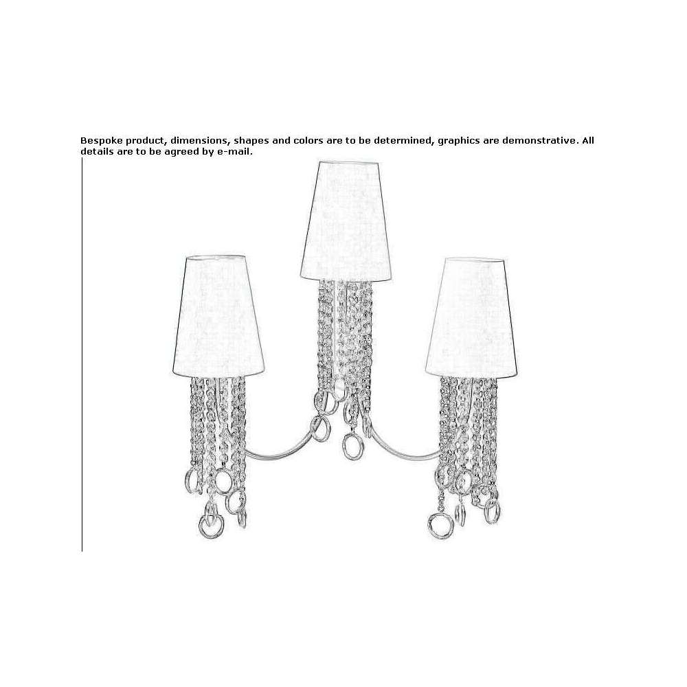 emotional language of light! Structure: metal and brass parts Speakers: cylindrical lampshades made of stiff fabric Hanging decorations: crystal chains with brass rings Finish: polished chrome, polished gold, satin gold, satin nickel Ceiling medallions: Metal