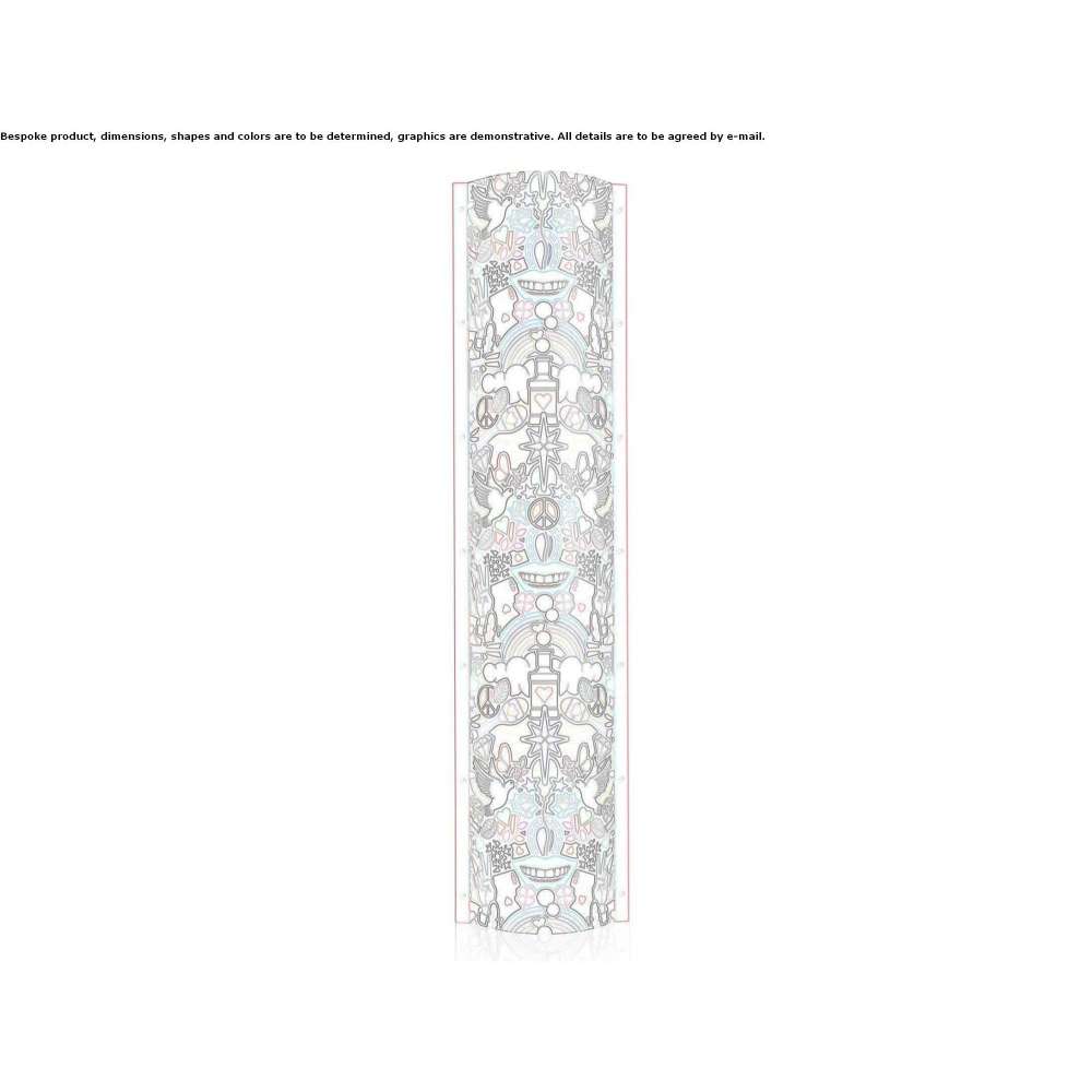 Iconic semantics meet Dadaist nods in Studio Job's ode to the subway, bringing a boldly poetic aura to Slamp's historic masterpiece, first produced in the early '90s. The collection of 7 extravagant lamps is illuminated by a strong, surreal identity born of creative expression: Labirynt, Love Peace Joy, Perished, Peace Skull, Faena Art, Bananas, L'Afrique. Luscious smiling lips, dancing animal skeletons, pop art fruits, Renaissance references and superstitious fears are all part of an iconic everyday life, seemingly disordered, yet perfectly recognizable thanks to a series of graphic design principles (symmetries, watermarks, and layering). The works of Job Smeets and Nynke Tynagel are characterized by extraordinary attention to detail, which makes each piece unique. Painted, rounded profiles, matching or contrasting hemispherical buttons in dominant colors, and specially designed wire covers are just some of the various details used to complement their designs. Dense metaphorical suggestions, transposed iconic references and two-dimensional forms gain depth when printed on transparent Cristalflex® applied to an Opalflex® layer that evenly transmits light. The result is pure extremism, and Tubes is a complete work of art, bathed in semantics, extracted from the "cabinet of curiosities" faithful to the cool style of Studio Job.