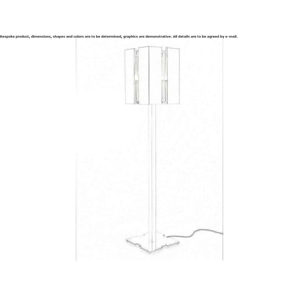 Standard: the fixture is delivered without a lamp. Transparent PMMA. Floor and table lamp with a cord switch. Suspension with black cover and high-gloss polished stainless steel cover.