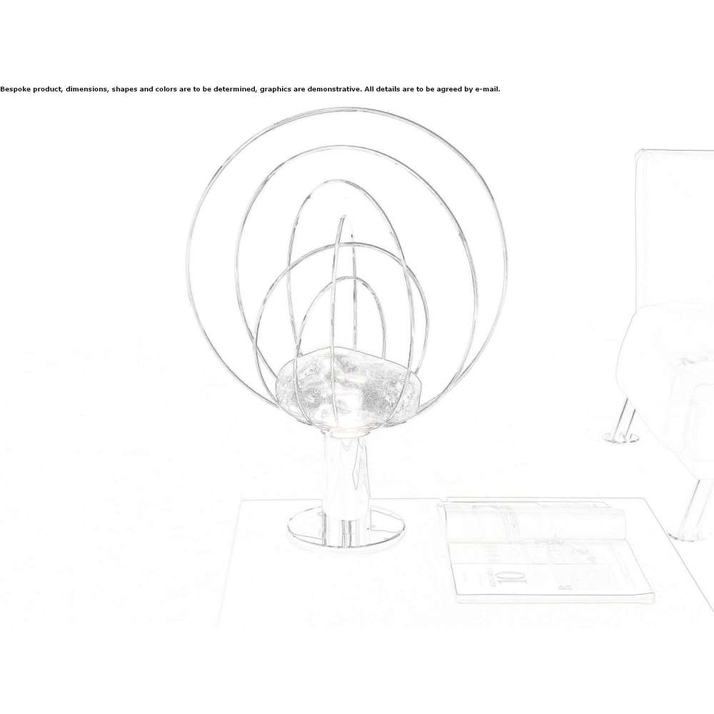Barnabas. Lamp, galaxy. A table lamp from the Esperia collection, which can rightly be described as a truly modern light sculpture. More than all other models, Barnaba has left a fundamental mark on our style. Designed in 1974, it embodies three features that still distinguish our brand. A combination of glass and brass, "cut" glass decoration and "rings". This sculptural lamp has a base that conceals a light source to which metal halos of various diameters are attached. There is an artistic, handmade crystal above the light source. Handmade art glass weighing approximately 7 kg.
