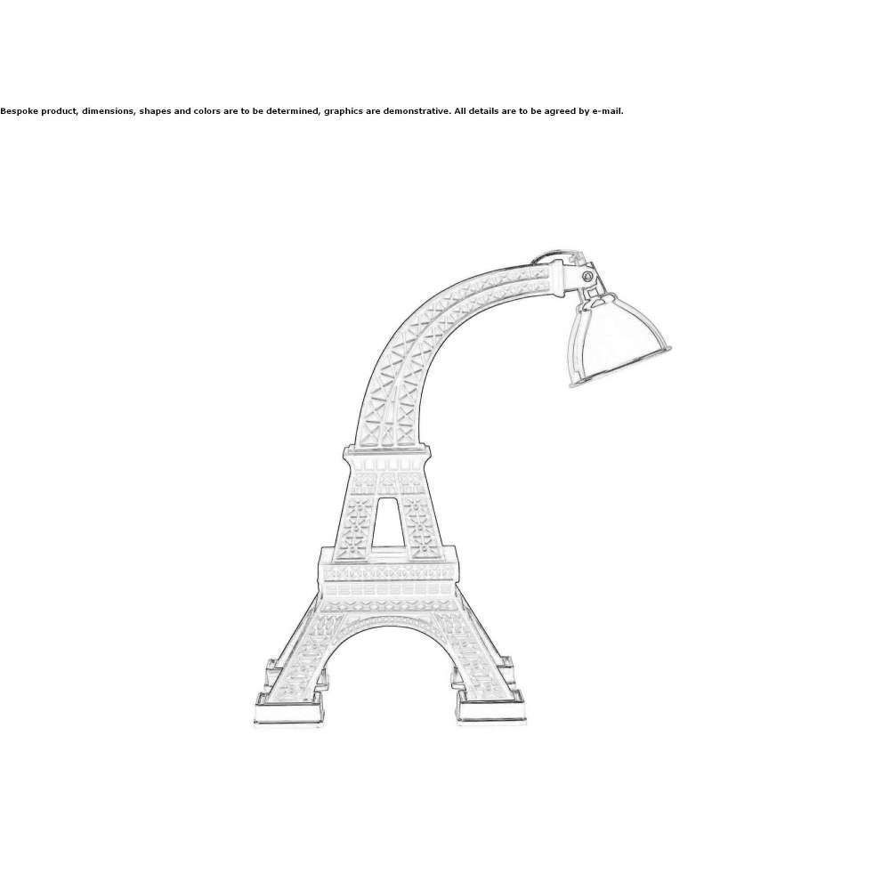 Cable: EU PlugParis, designed by Studio Job, is a lamp inspired by the years that Job Smeets spent as a young "bohemian", living in Paris, where The Eiffel Tower was his neighbor, which gave him comfort in his life. This design features a Tour Eiffel that, when bent, becomes the support for a brass diffuser for a floor or table lamp. Available in XL, M and XS versions.