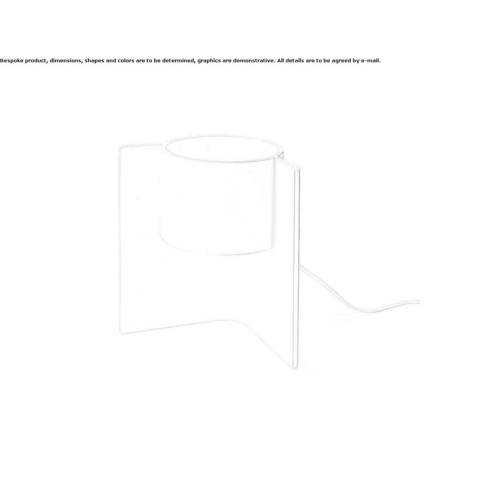 Essential geometries and archetypes are the features of this table lamp, which feels almost abstract and two-dimensional, reminiscent of an illustration from a geometry book. A cylinder hiding the light source, on an inclined base, which becomes a stable support for the unit, to obtain a shape that changes with the direction of view and arouses interest from both sides.