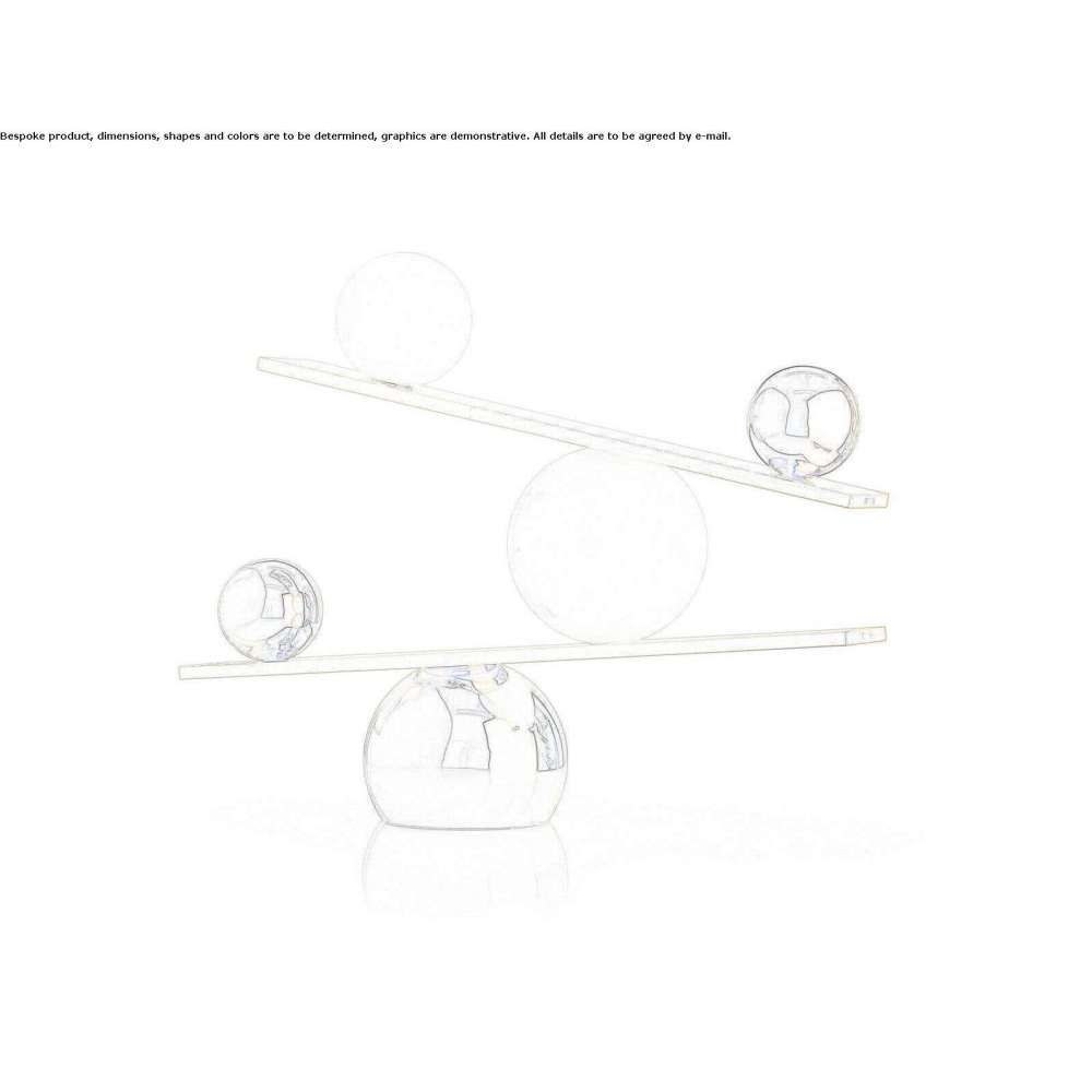 The fixed, impossible position of the balls is an expression of the fragility of existence. All beings move and nothing remains still. Balance is a game with the concept of time - everything is in motion.