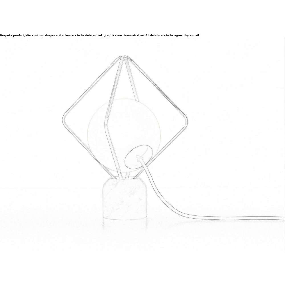 Jack O'Lantern is a table lamp designed by Lucie Koldova. This modern lighting element with a marble base, metal frames and a "gem" inside, designed by Lucie Koldova, complements the diverse Jack O'Lantern family. The new version of the table combines the beauty of hand-blown acid-etched glass in smoky gray, light pink or triple opal with a Carrara or satin-finished Nero Marquinia marble base, in a frame with a liquid metal coating in copper, chrome or black chrome. The Jack O'Lantern table is available in two sizes, and its large version measures 630 x 400 mm. This subtle and geometrically balanced light offers a wide range of combinations. It can be hung separately or in vertical lighting arrangements. In addition to the hanging variant, a wall composition is also available, consisting of five frames combined into one module, in which a maximum of five glass spheres can be placed, which are held in place solely by gravity.