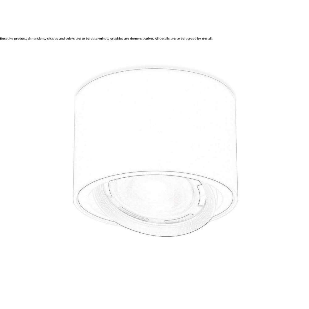 Round surface-mounted spotlight for the use of dimmable and mirrored spotlights, with surface-mounted housing with sharp edges, without visible screw connection, light source rotatable by 360° and tiltable by 25°.