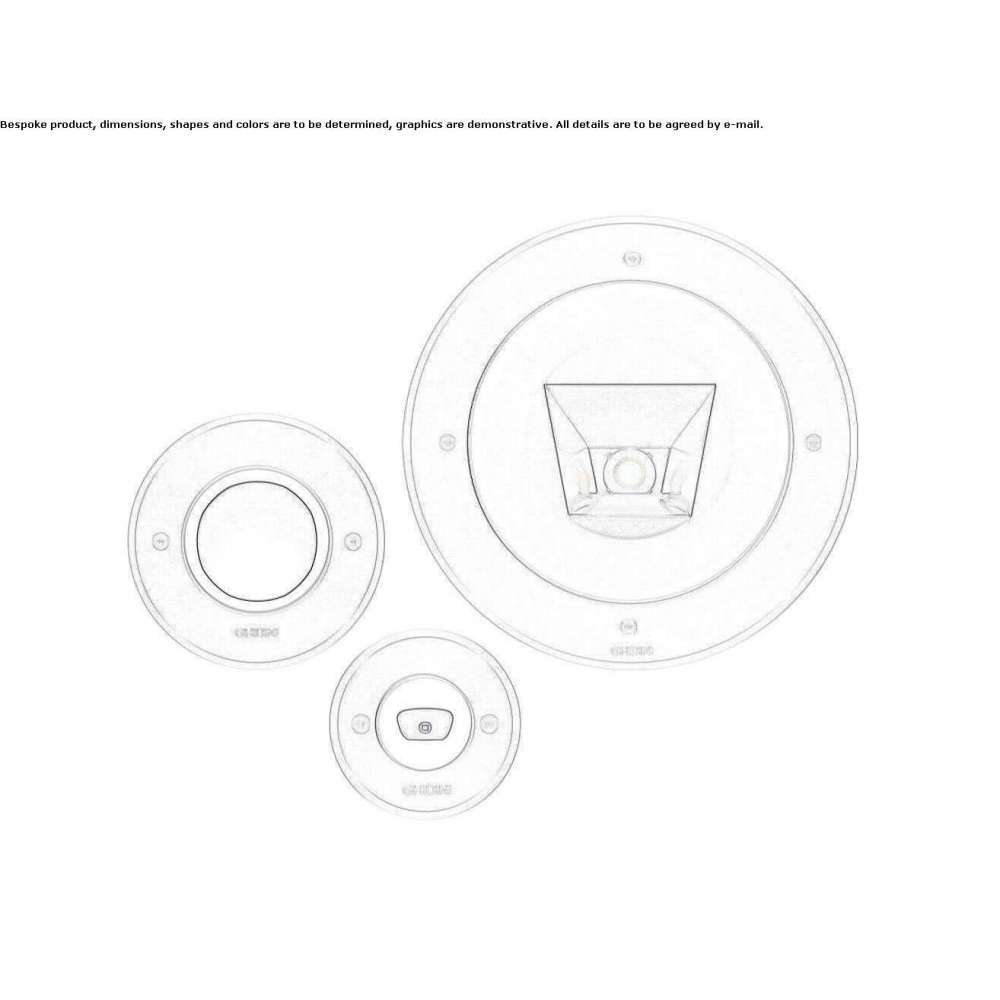 series of recessed lighting fixtures with a small recess depth. Available in various sizes, they are designed to illuminate facades, plants, shrubs and bushes in general thanks to a wide range of optics and power. The diffuser body and closing ring are made of a highly oxidation-resistant aluminum alloy that has been treated with nano-bonderite and finished with a textured polyester powder paint, making the product resistant to atmospheric agents and UV rays, guaranteeing maximum protection for years. Silicone gaskets ensure maximum tightness in all operating and temperature conditions. The ultra-clear soda-lime glass diffuser ensures maximum light transmission and is finished with a screen print. The external finishing frame and screws are made of stainless steel. As an alternative to the stainless steel frame, a natural bronze frame is also available. The product is equipped with the Ghidini water lock system, which prevents condensation on the power cable due to alternating on and off cycles. The product is mounted in a polypropylene recessed housing, which prevents the luminaire from contacting the ground directly and provides the necessary space for cabling. The product can be driven at low speed (max. 15/km/h) in areas prohibited for road traffic. Not suitable for installation in swimming pools and fountains.