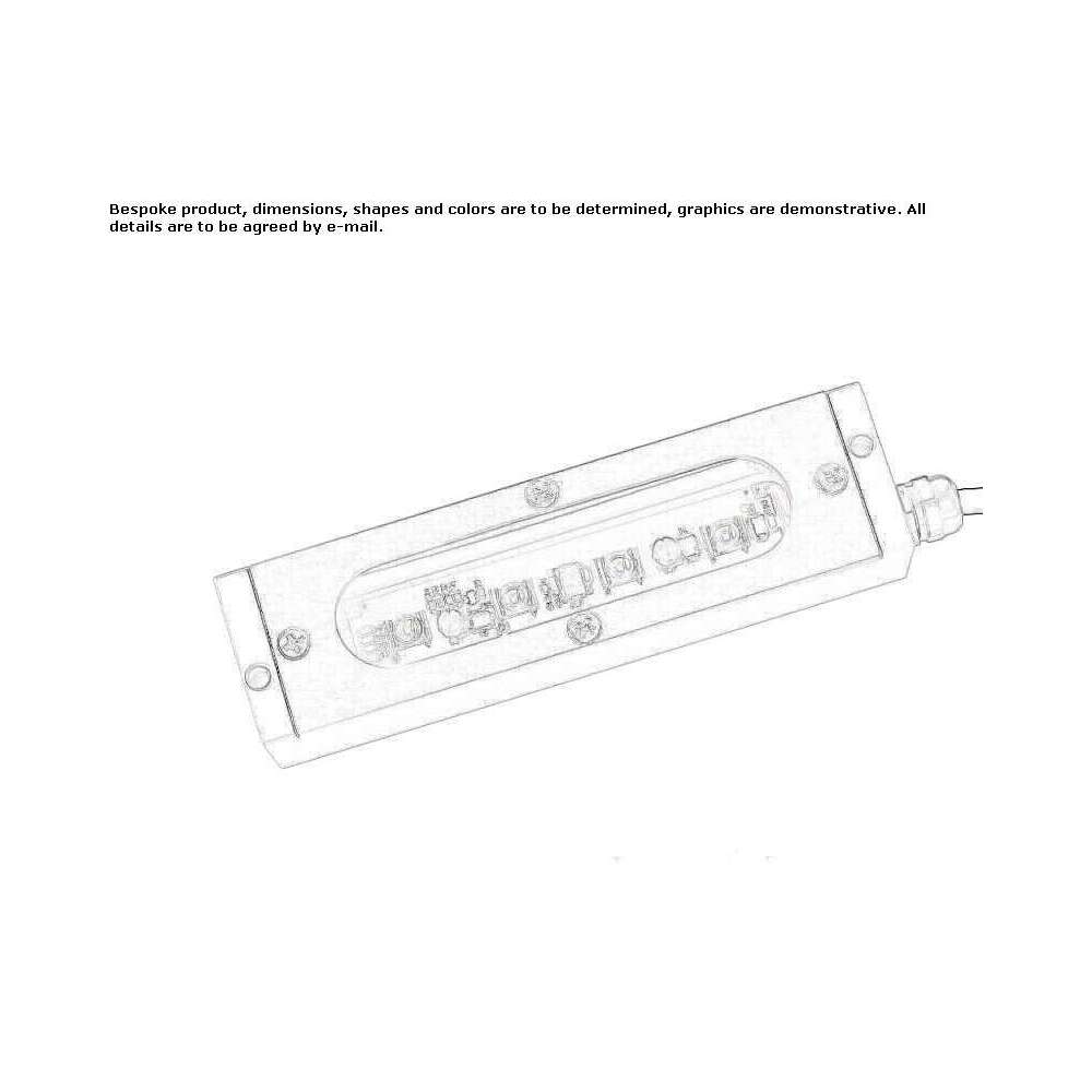 LED luminaire for decorative lighting intended for wall or ceiling mounting. Body: anodized aluminum. Frame and screws: stainless steel. IP65. Nickel-plated brass cable gland included.