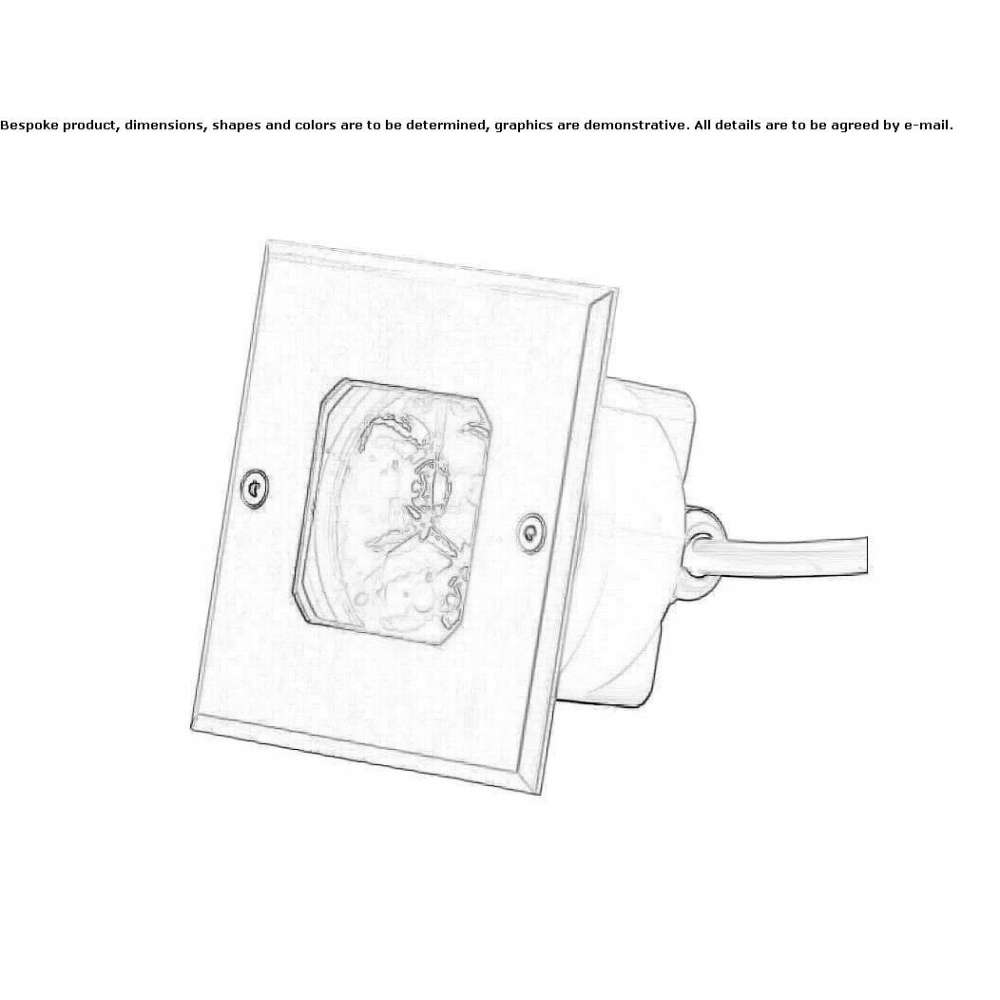 Built-in overrun spotlight. Aluminum housing, square stainless steel flange.
