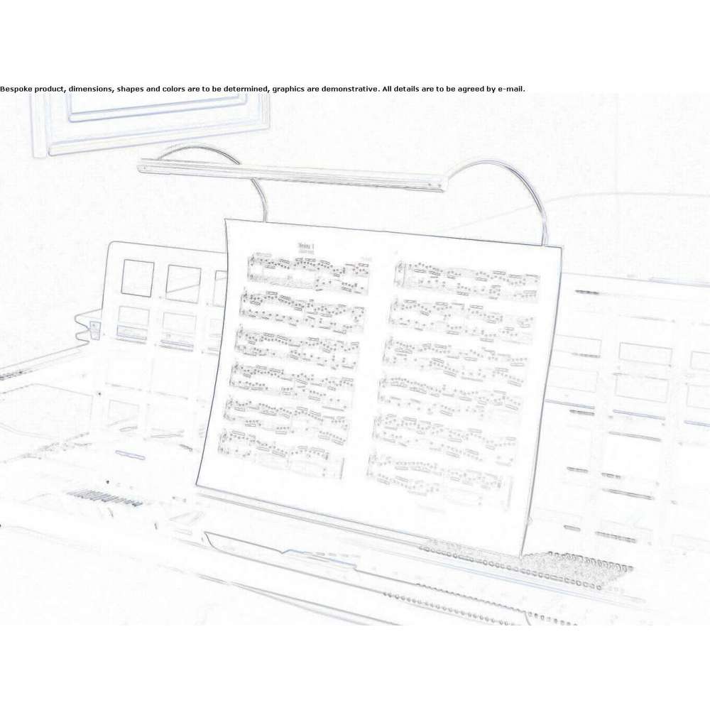 Piano is an LED lamp made of brass, perfect for illuminating musical notes. Every pianist or organist needs good lighting to be able to read music. It is adjustable in height and is attached to a table covered with velvet, which then becomes background music. The only wiring is a socket at the bottom of the keyboard. By simply disconnecting the transformer cable, the card can be easily removed together with the lamp. The fluorescent lamp can be rotated and the pianist can adjust the lighting himself.