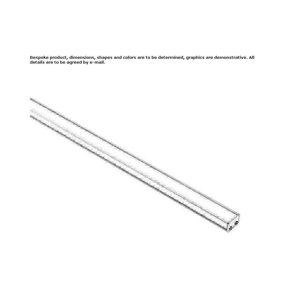 Linear profile for interior applications; surface-mounted (ceiling, wall); body made of anodized aluminum alloy EN AW 6060, screen made of transparent or matte polycarbonate; 30, 60, 120, 180 medium power LEDs; 5 W (236 mm), 9 W (448 mm), 17 W (873 mm), 22 W (1298 mm) - 24 Vdc; includes PVC cable 0.50 m long, 1.5 m FROR 2x0.35 Ø3.5 mm; total lumens delivered: 255lm (3000K, 236mm); 510 mb (3000K, 448mm), 1020 mb (3000K, 873mm), 1530 mb (3000K, 1298mm); diffuse optics; LED color: white - 2700K, 3000K, 4000K; protection level: IP40; operating temperature: 0°C +45°C; screen temperature: max 40°C (Ta 25°C); photobiological safety: risk group 1 according to EN62471:2006; device class: III; weight 0.50 kg/m; dimensions 236/448/873/1298x19x13 mm; dimming with a dimmer