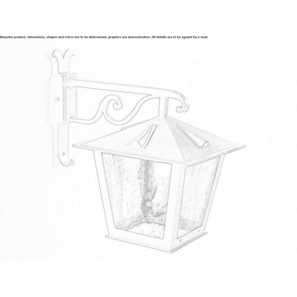 Toscana is an iron wall lantern with bottom bracket and glass, galvanized and powder coated.