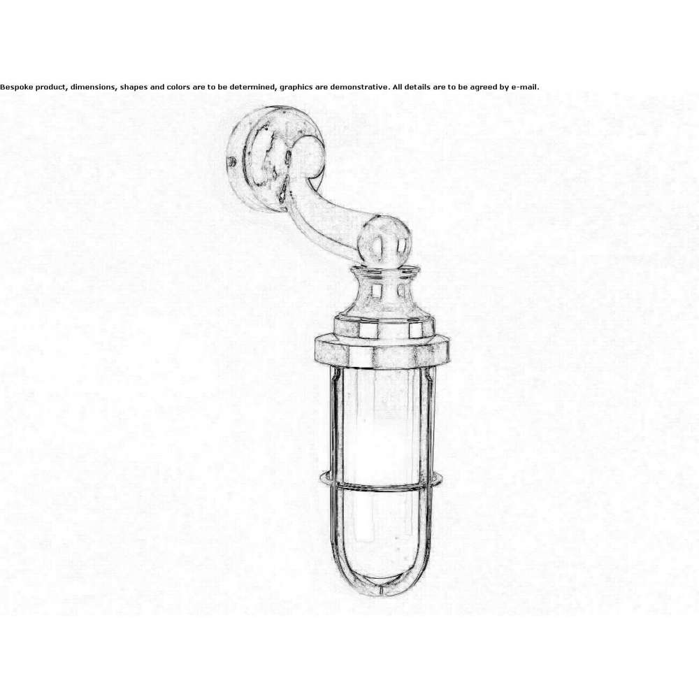 Dori is an iron wall lantern with a glass and brass gate, galvanized and powder coated.