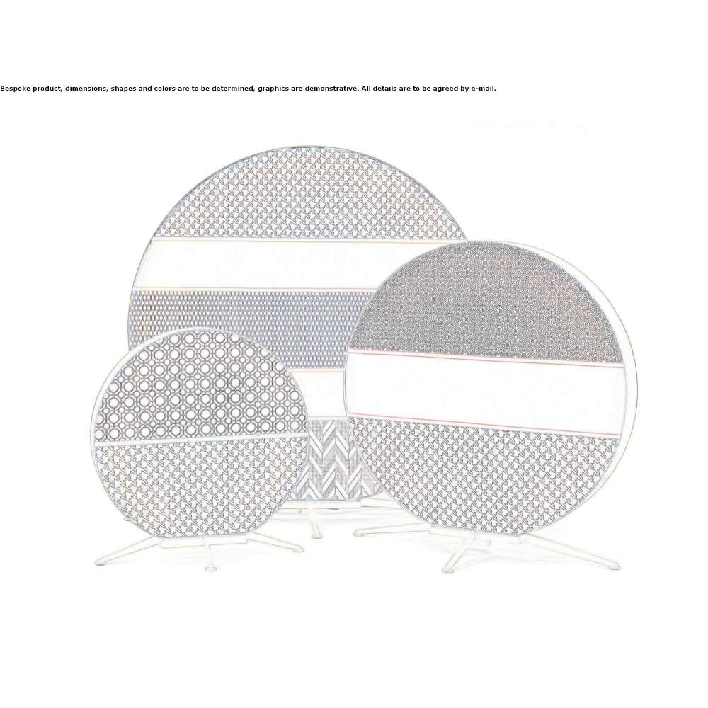 Babu is an IP65 outdoor collection, designed to surprise by following a luminous sign in space. It is made using innovative three-dimensional digital printing technology on outdoor fabrics, which gives depth and creates interesting optical games. Offered in three sizes and two texture options: Babu Textile with velvet exterior finishes in orange, navy blue and mustard; and Babu Tribal with overlapping geometric patterns. The steel base is electroplated for corrosion resistance (making it suitable for use on ships). The lamps are delivered with an IP68 connector. Anchoring to the ground is available on request, depending on the type of surface on which they are to be mounted.