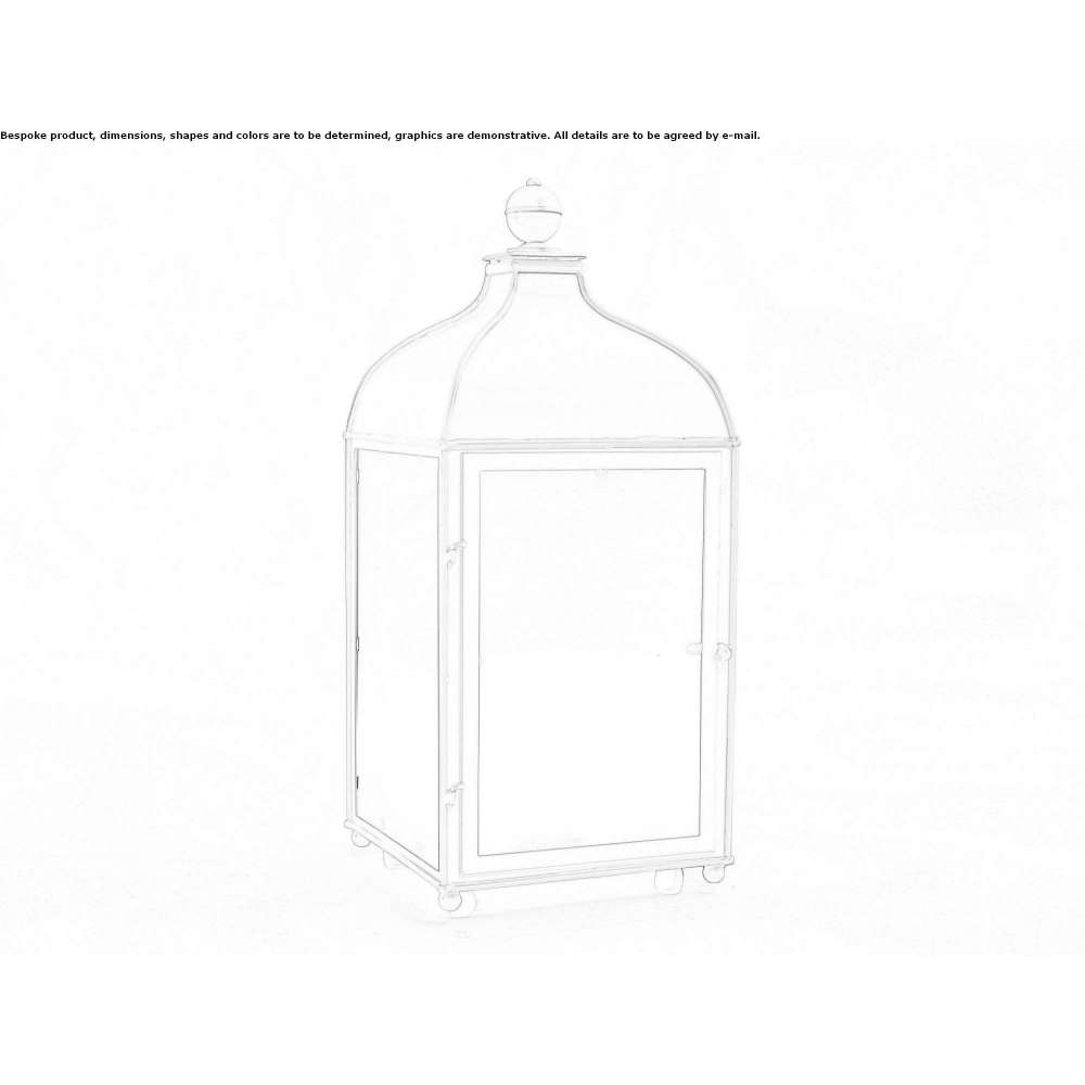 Tropez is a floor lantern with decoration in the form of balls on wheels, with a battery, galvanized and powder-coated.