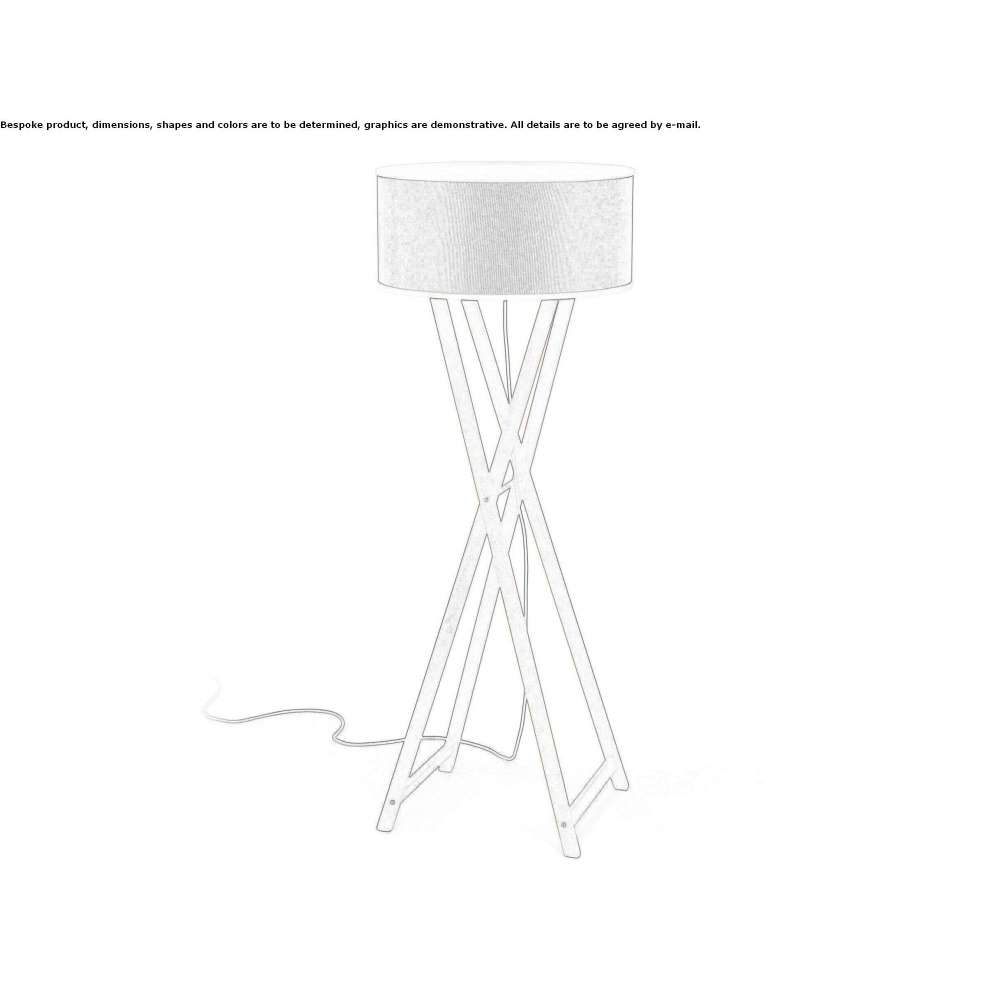 Type product: Floor Light source: 3x E27 LED Standard 8W The beauty of the Cala collection comes from its simple, synthetic and essential form: a translucent lampshade that embraces the light, providing very warm lighting. Its goal is to create a comfortable outdoor environment. Its structure is inspired by a classic painting easel, and the rotomolded polyethylene shade is surrounded by a zippered textile cover that filters light and gives it a rich, refined texture. The Cala collection is intended for indoor and outdoor use, in several sizes, with a structure in wood or metal.